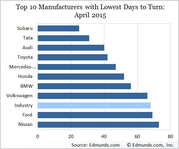 Days to Turn by Manufacturer is the average number of days vehicles were in dealer inventory before they were sold during the months indicated.